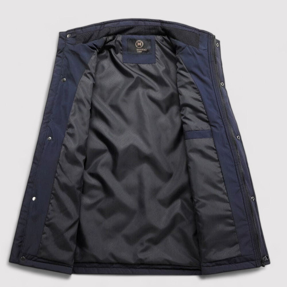 The outer layer is durable and water-repellent, while the inner lining is soft and warm, filled with premium insulation. It features practical pockets for safely storing your essentials and is available in various sizes to ensure a perfect fit.