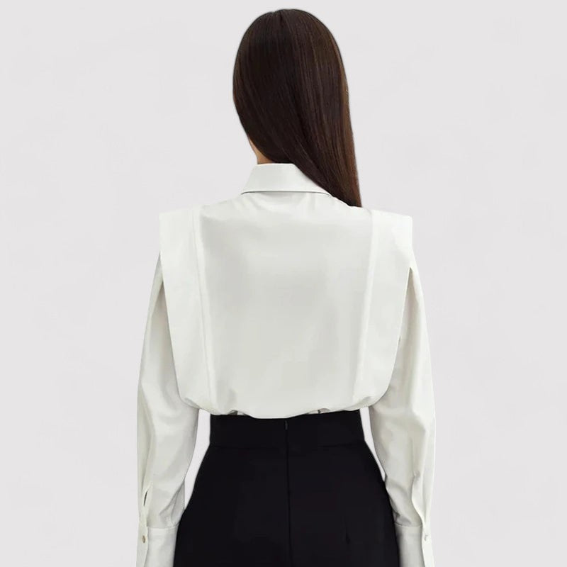 Het klassieke ontwerp, met lange mouwen en een comfortabele pasvorm, maakt het ideaal voor werk en speciale gelegenheden. De unieke stijl is perfect voor wie op zoek is naar een professionele en toch modieuze look, met een vleugje verfijning en functionaliteit.