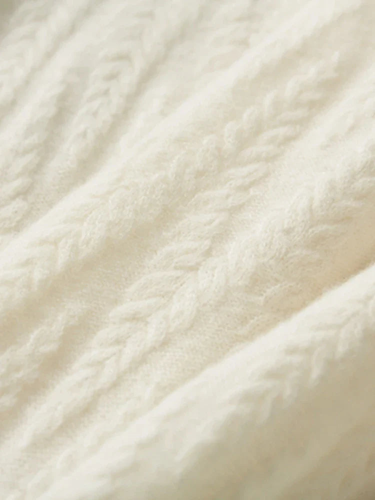 Monidoco Cashmere Trui met Kabelgebreide O-hals