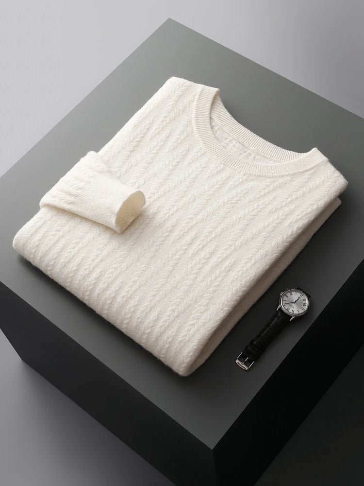 Zachte elegantie: Kasjmier Trui met Kabelgebreide O-hals