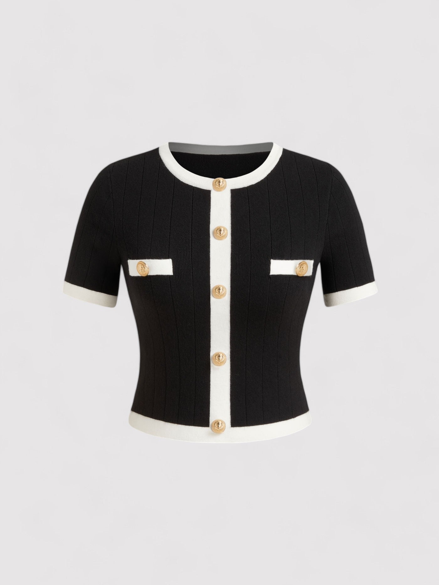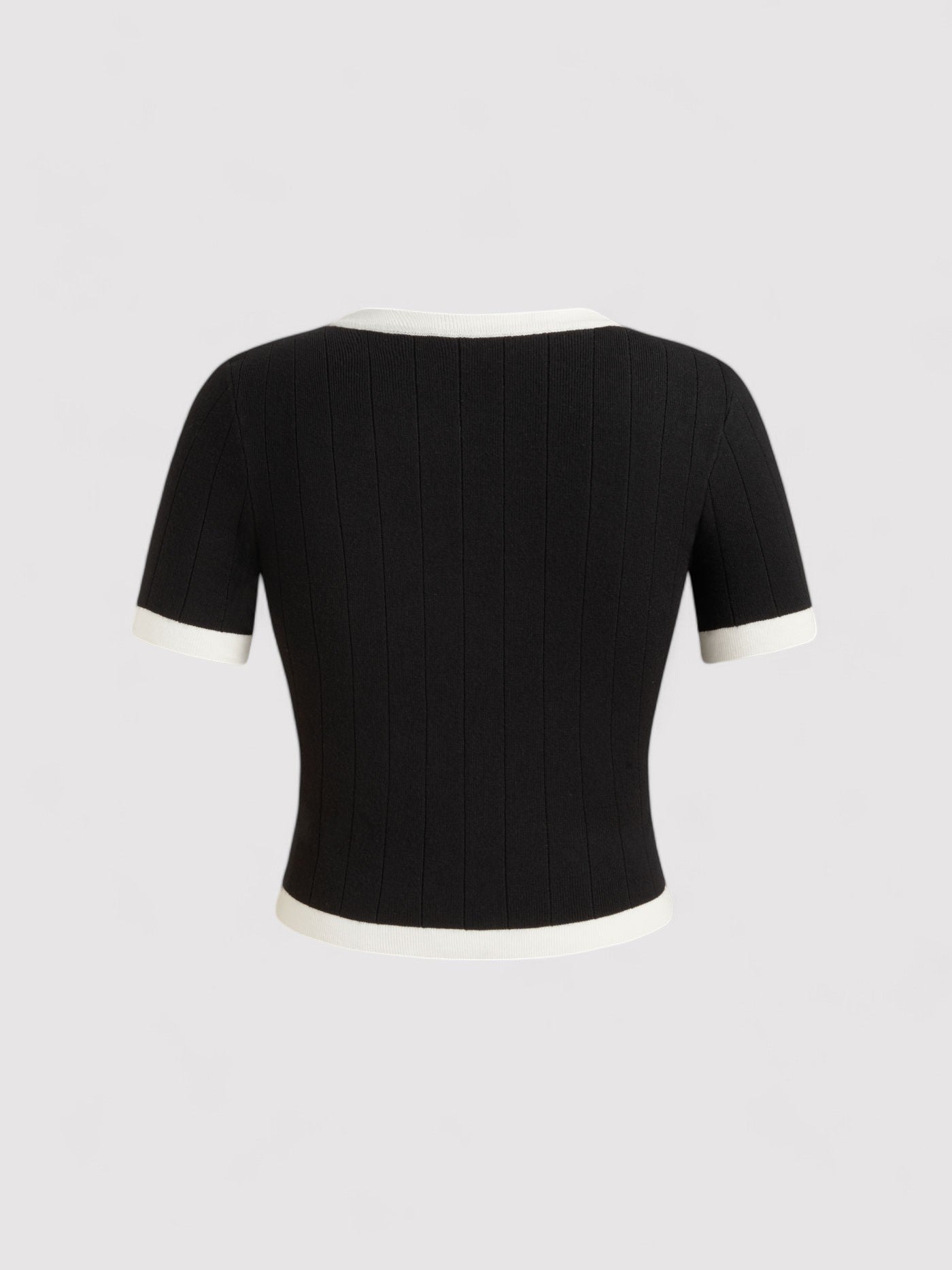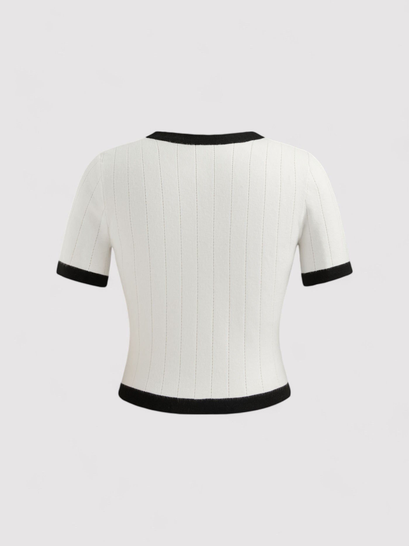 Moeiteloze elegantie: Uw go-to gebreide top met korte mouwen en ronde hals