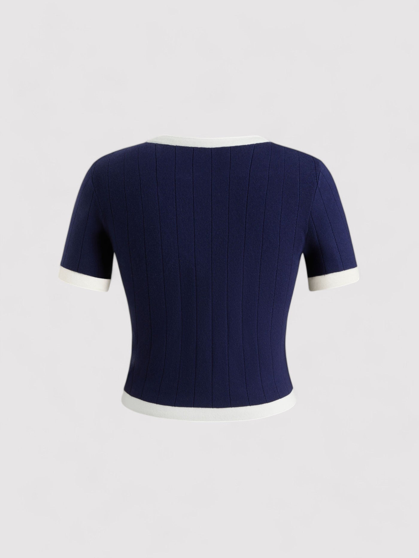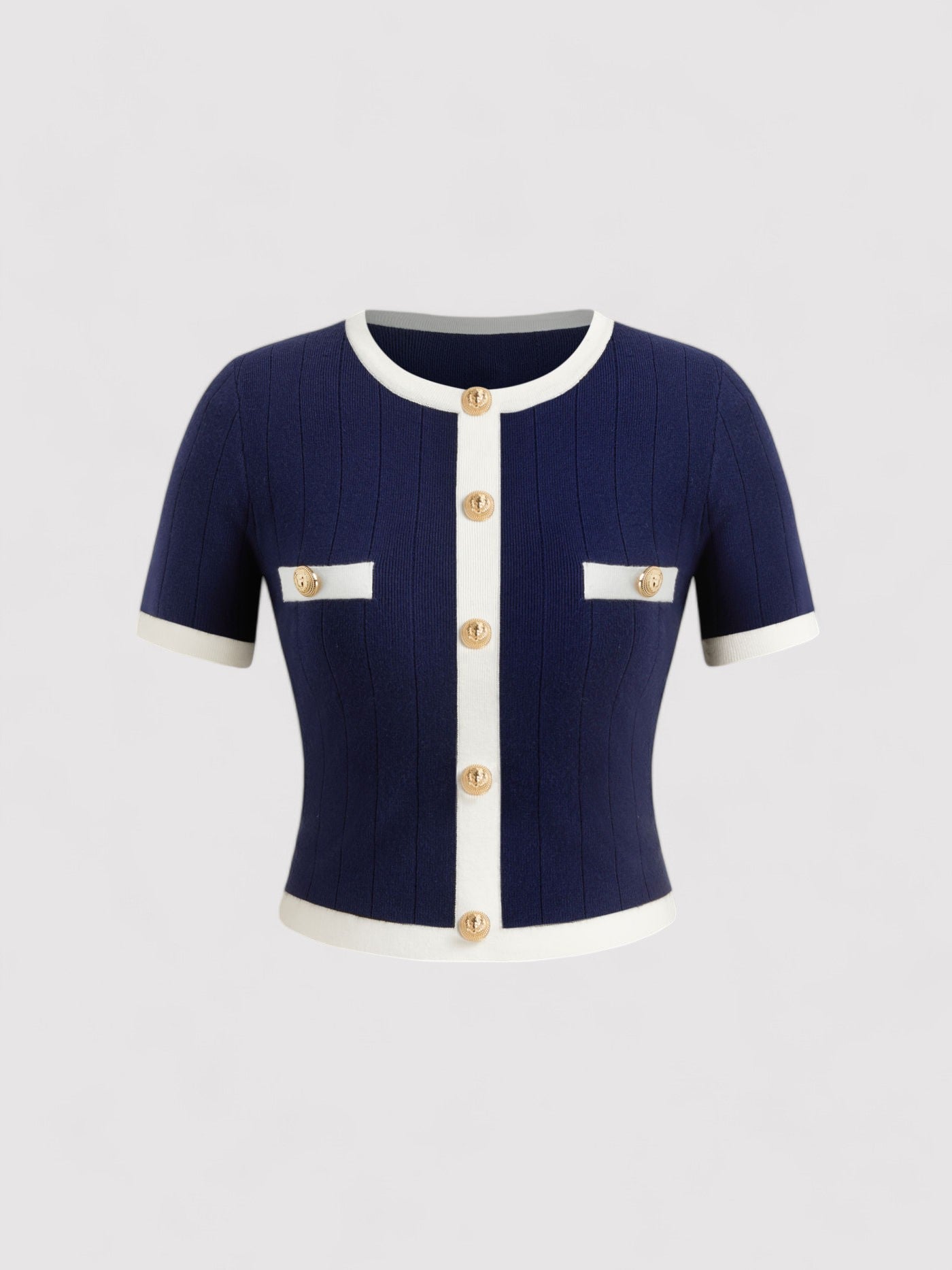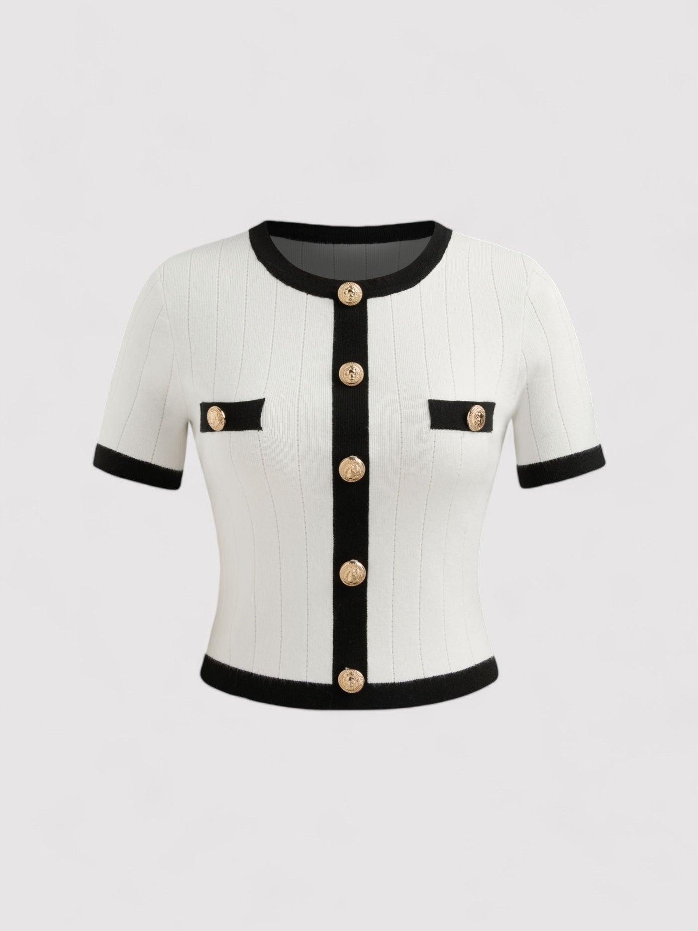 Moeiteloze elegantie: Uw go-to gebreide top met korte mouwen en ronde hals