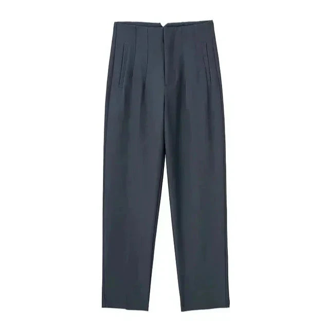 Deze casual formele broek met hoge taille combineert een elegante snit met een ontspannen pasvorm. De hoge tailleband flatteert het silhouet, terwijl de losse snit voor comfort zorgt. Ideaal voor stijlvolle gelegenheden waar elegantie en comfort vereist zijn.