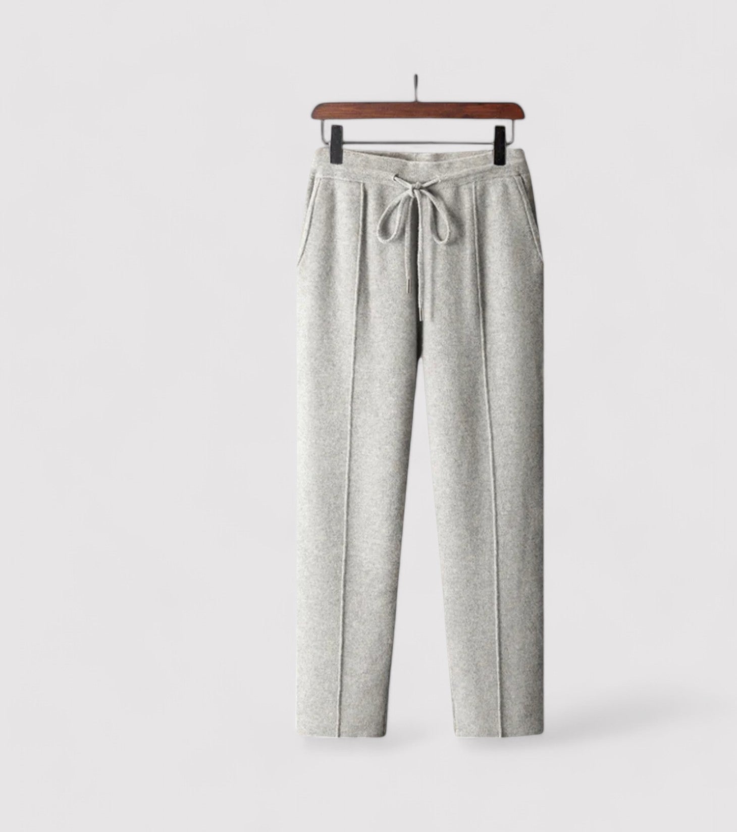 De op maat gemaakte pasvorm zorgt ervoor dat deze broek naadloos overgaat van loungen thuis naar stappen voor casual uitjes. Voel hoe de lichtgewicht stof op natuurlijke wijze over uw benen valt en u zowel flexibiliteit als warmte biedt zonder afbreuk te doen aan stijl.