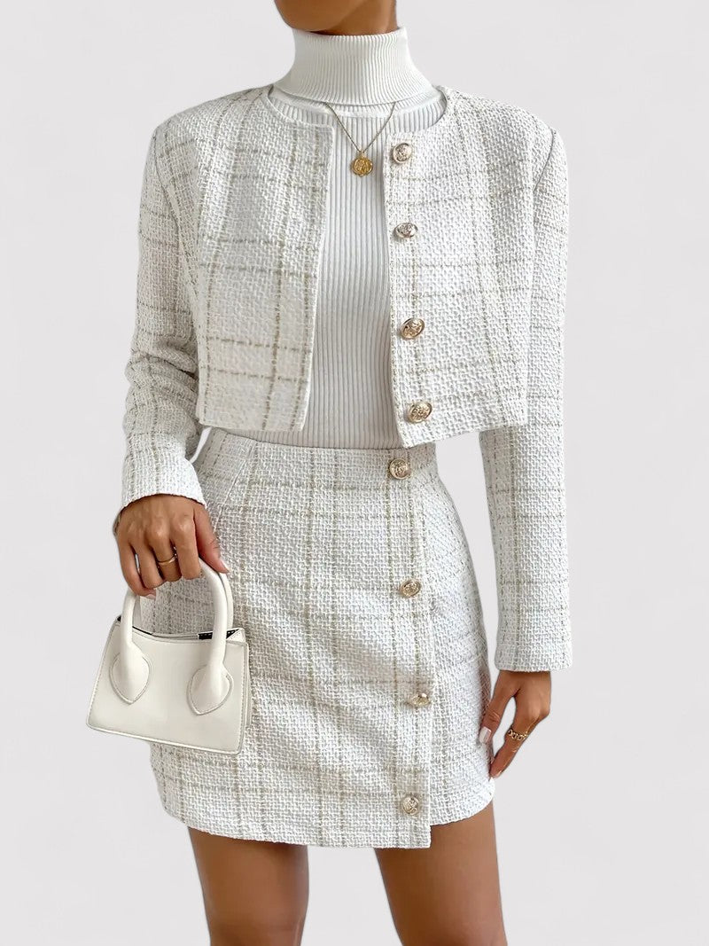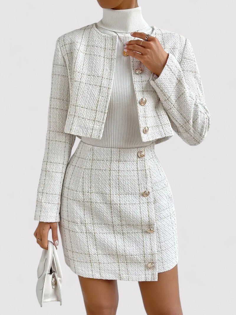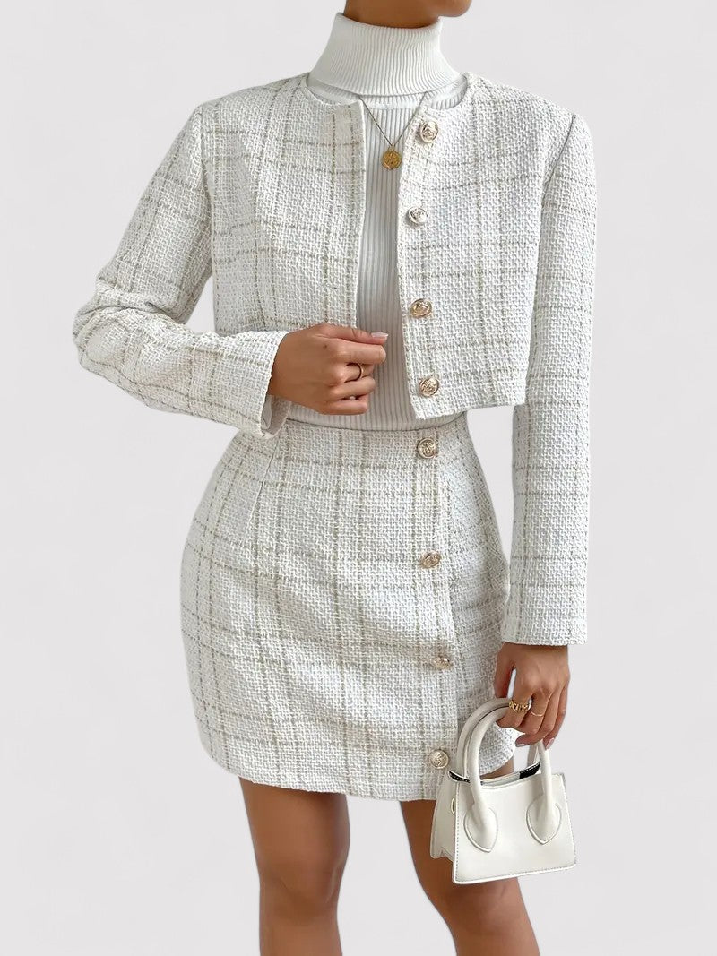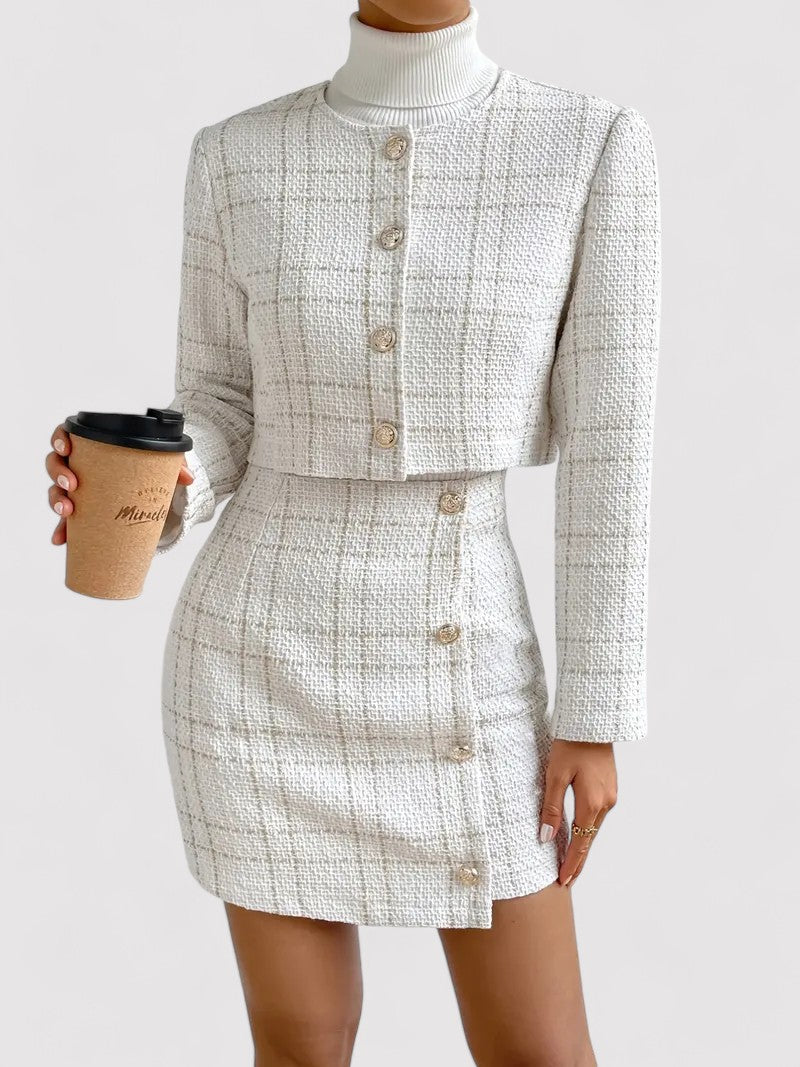 Monidoco Elegante Ruit Tweedelige Set met Korte Rok