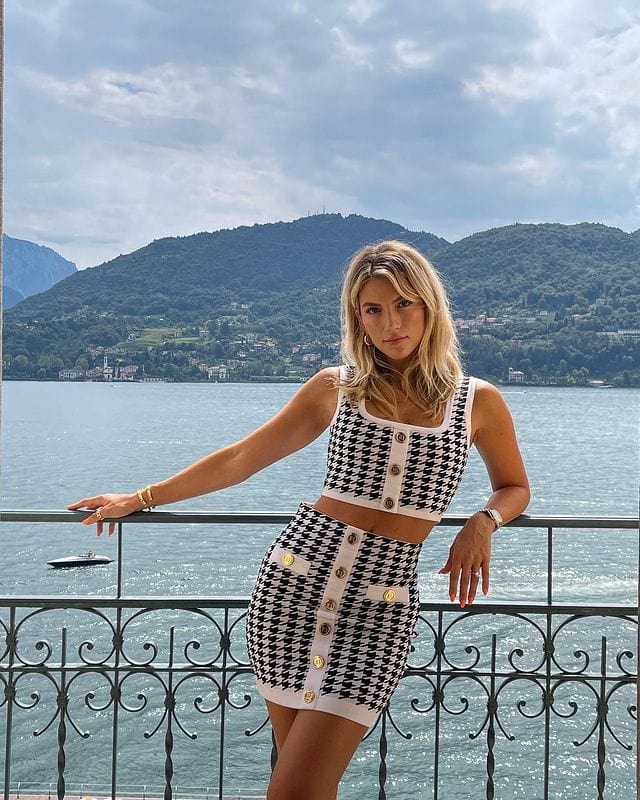 De set bestaat uit een getailleerde rok en een gestructureerde crop top, afgewerkt met een subtiele, elegante knoop. Of je hem nu draagt naar een formeel evenement of een casual dagje uit, deze outfit belichaamt moeiteloze klasse en verfijnde smaak.