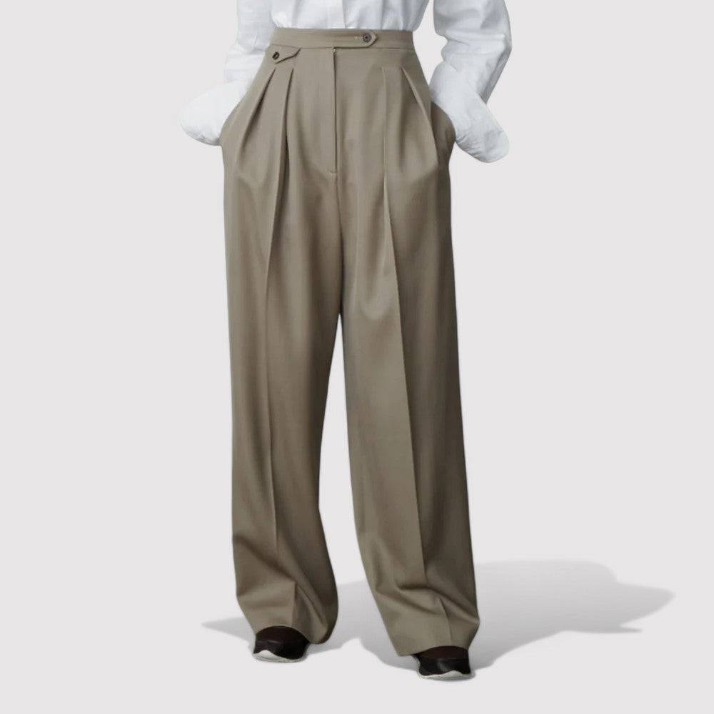 Stap in tijdloze verfijning met de Oversized Women's Pantalon. Deze broek in een serene lichte zandtint is het toppunt van relaxte luxe. Het luchtige, recht gesneden ontwerp valt sierlijk en geeft je silhouet een moeiteloos chique look die perfect is voor elke zomerse gelegenheid.