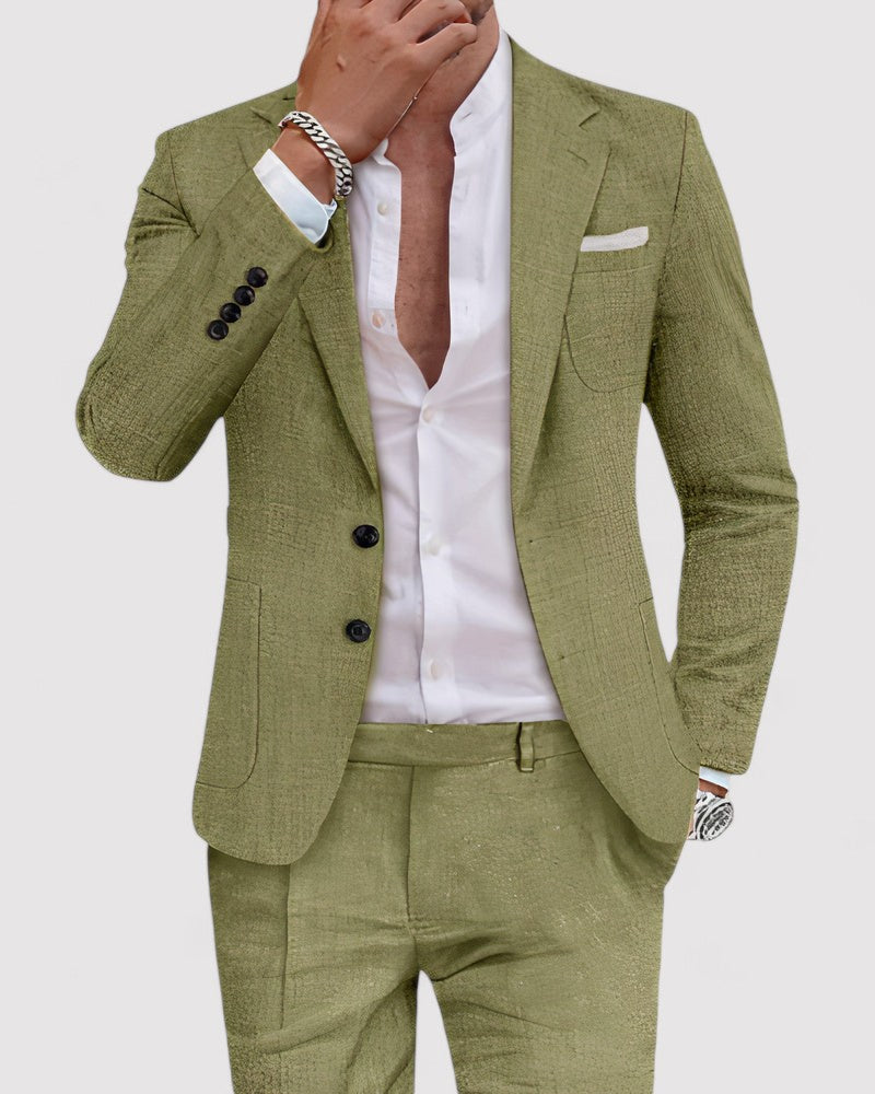 Stap in geraffineerde elegantie met het Premium Linen Suit, ontworpen voor wie zowel stijl als comfort zoekt. Dit pak is perfect voor warme zomerdagen en combineert een geraffineerd ontwerp met het luchtige comfort van hoogwaardig linnen, zodat je er gepolijst en on-trend uitziet, ongeacht de gelegenheid. Of je nu een formeel evenement bijwoont of geniet van een casual uitje, het Premium Linnen pak verandert je verschijning in een statement van moeiteloze gratie.
