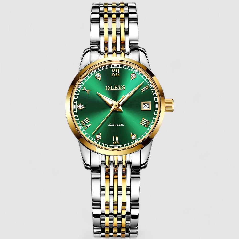 Dit exclusieve dameshorloge is met precisie gemaakt van hoogwaardig 904L roestvrij staal en biedt uitzonderlijke duurzaamheid en weerstand tegen roest. Het geavanceerde automatische uurwerk wordt aangedreven door de natuurlijke beweging van je pols, waardoor er geen batterij nodig is. Een saffierglas beschermt het horloge tegen krassen en beschadigingen en zorgt voor langdurige elegantie.
