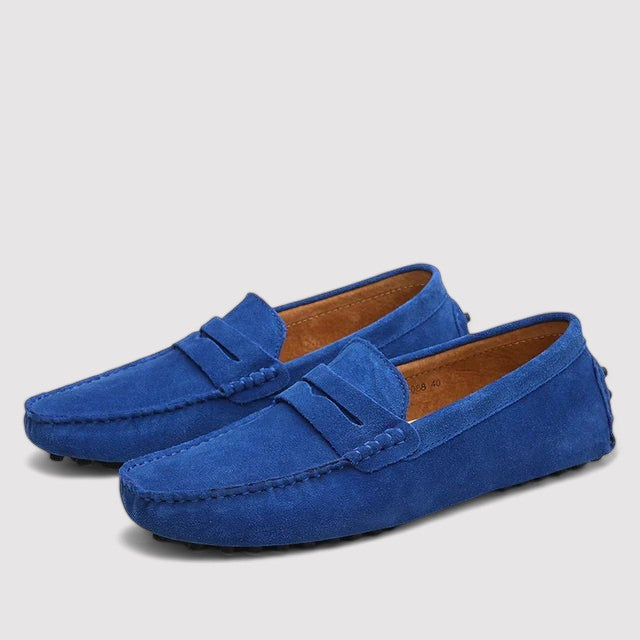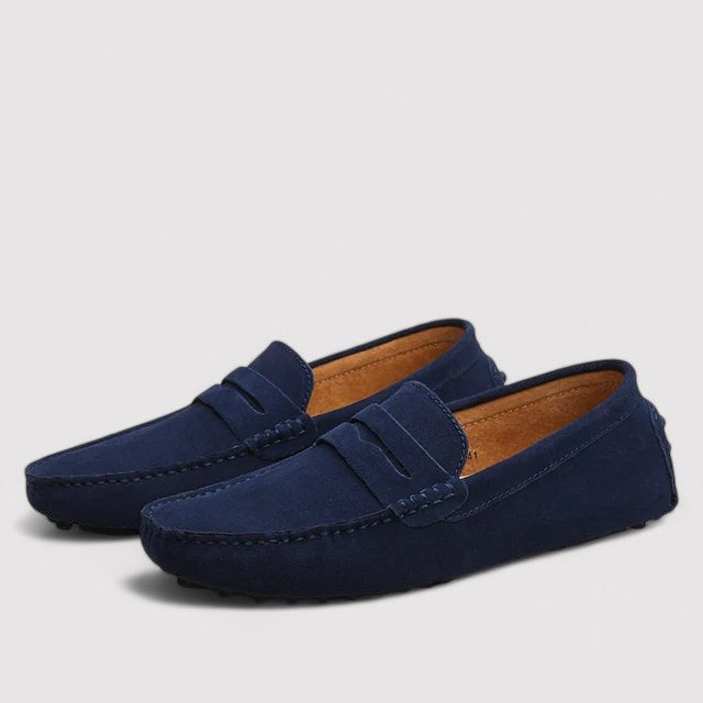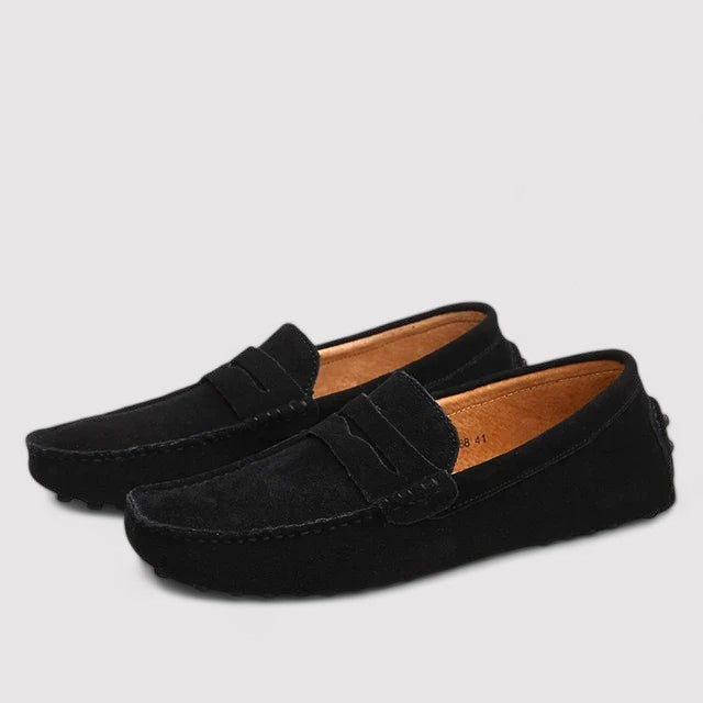 Stap in de elegantie met de luxe slippers van Monidoco, ontworpen voor een verfijnde stijl en uitzonderlijk comfort. Deze premium loafers zijn gemaakt van zacht kalfssuèdeleer en gedetailleerd met fijne stiksels voor een geraffineerde look.