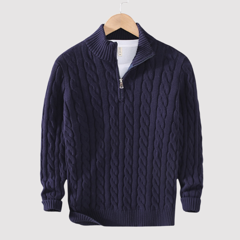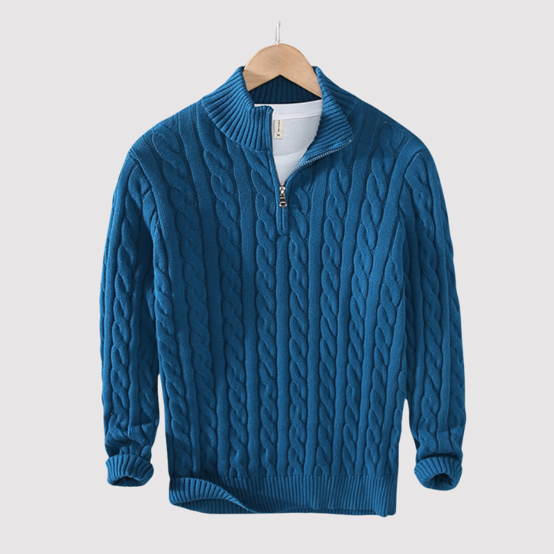De Verbier Half Zip Sweater is gemaakt van de beste kwaliteit katoen en biedt een ongeëvenaarde zachtheid en ademend vermogen, waardoor het een essentiële toevoeging aan je garderobe is. De hoge hals en ritssluiting aan de voorkant zorgen voor veelzijdigheid, zodat je de trui moeiteloos kunt combineren met meer gepolijste evenementen. De geribbelde afwerking zorgt voor een klassieke touch, zodat je stijl moeiteloos chic blijft.