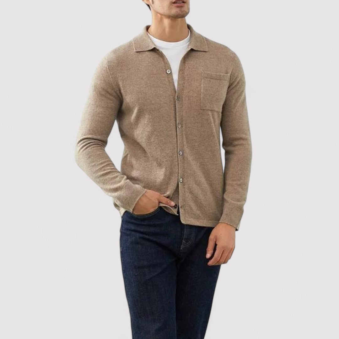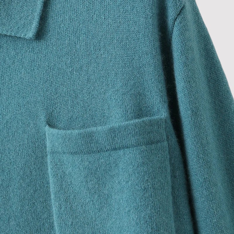 Het ontwerp heeft een enkele knoopsluiting en een opvouwbare kraaghalslijn, waardoor het een verfijnde en slimme casual uitstraling heeft. Het heeft mouwen over de hele lengte en functionele zakken die een vleugje praktische bruikbaarheid toevoegen. De standaard wolbinding zorgt voor uitstekende temperatuurregulatie en een consistent gepolijste look.