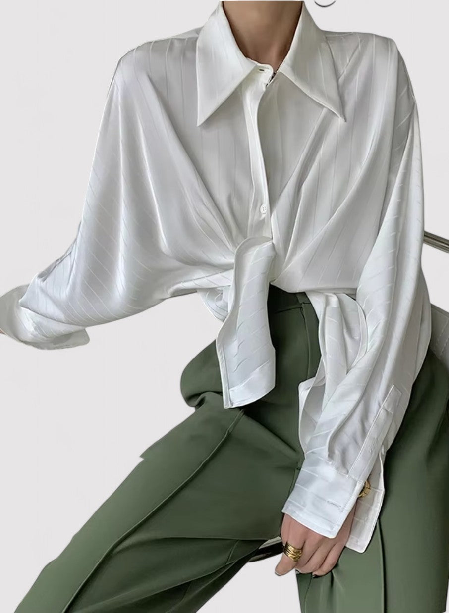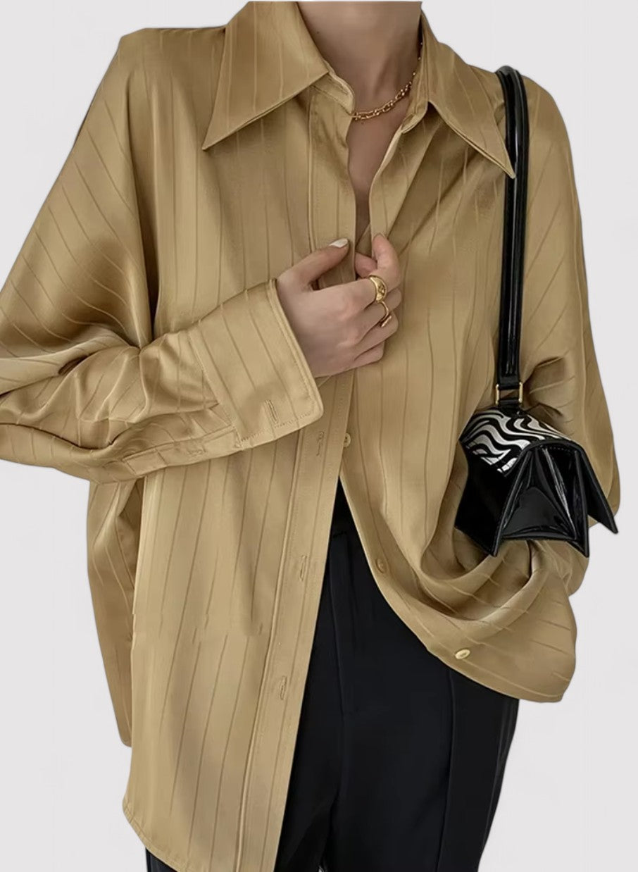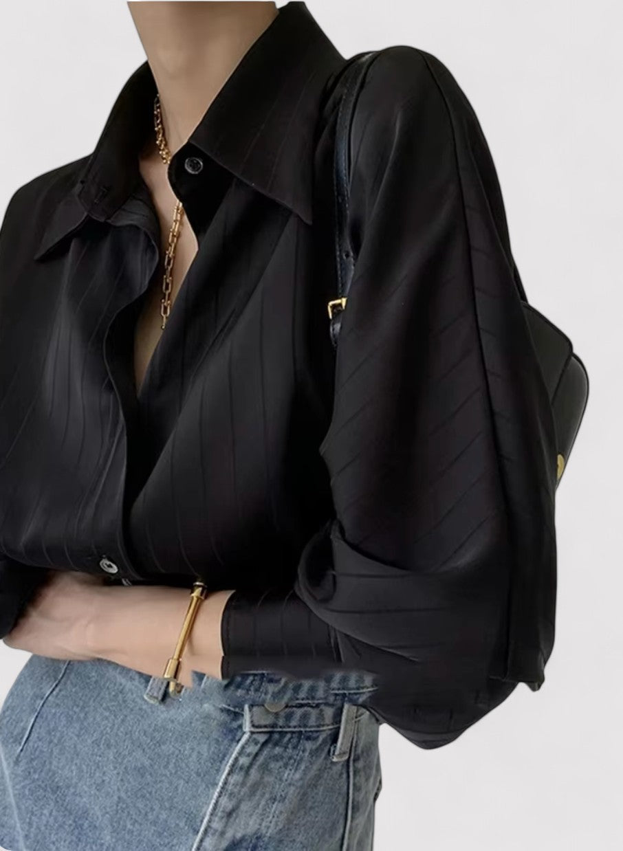 Its loose fit and comfortable design make it ideal for busy workdays and relaxed outings. The blouse's versatile style is perfect for those looking for a chic yet casual look, blending practicality with sophistication.