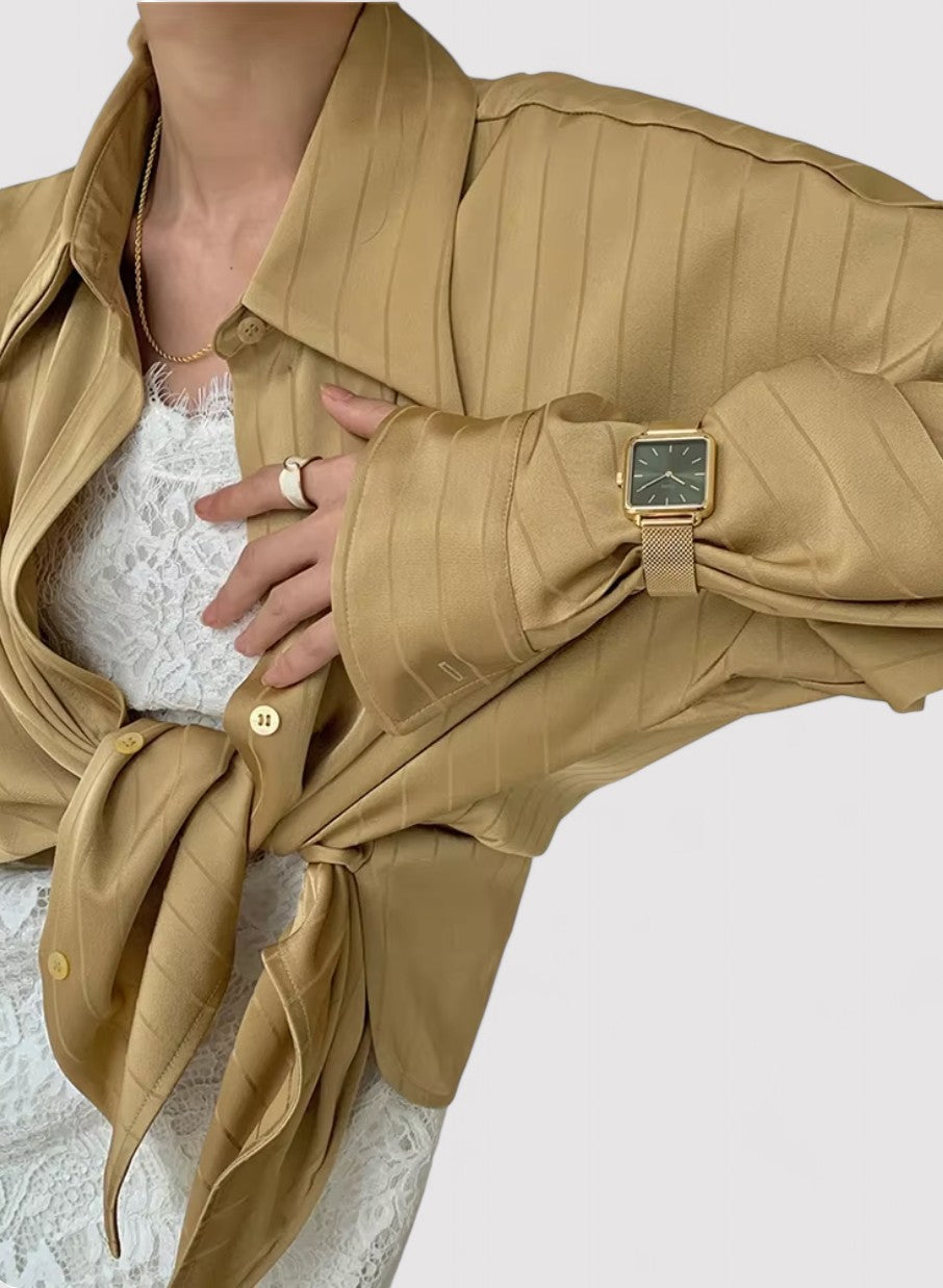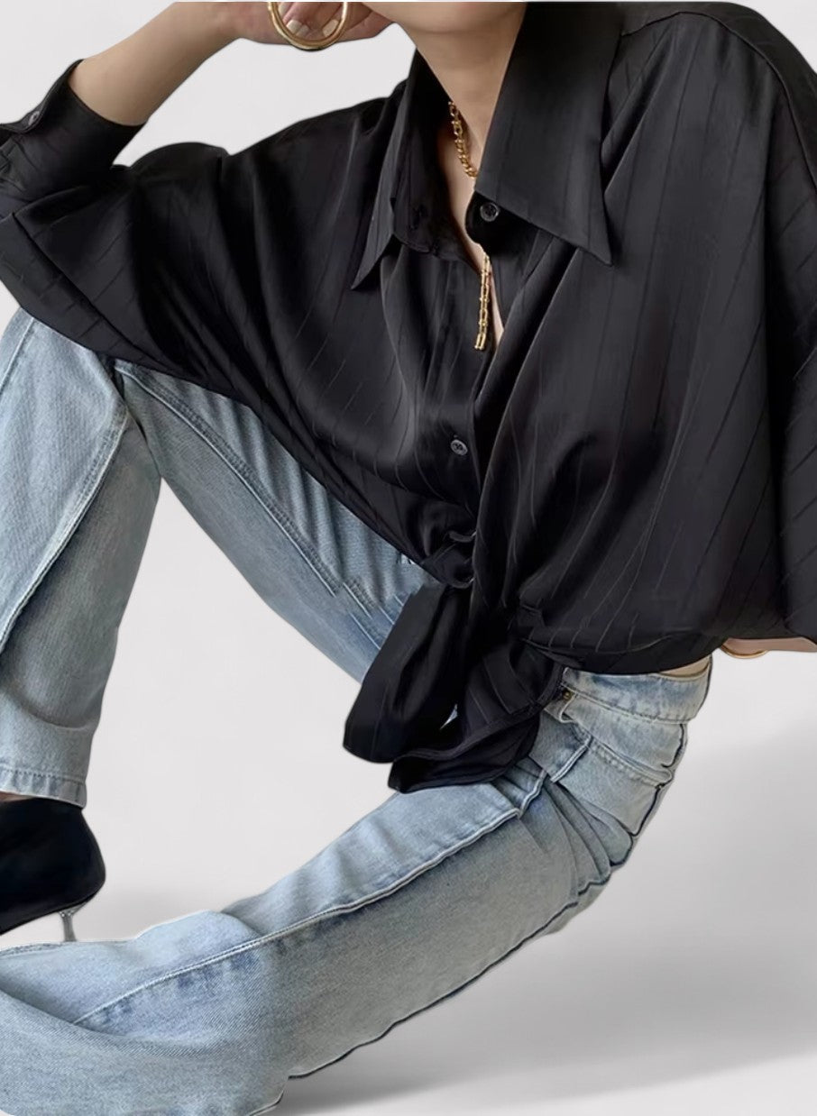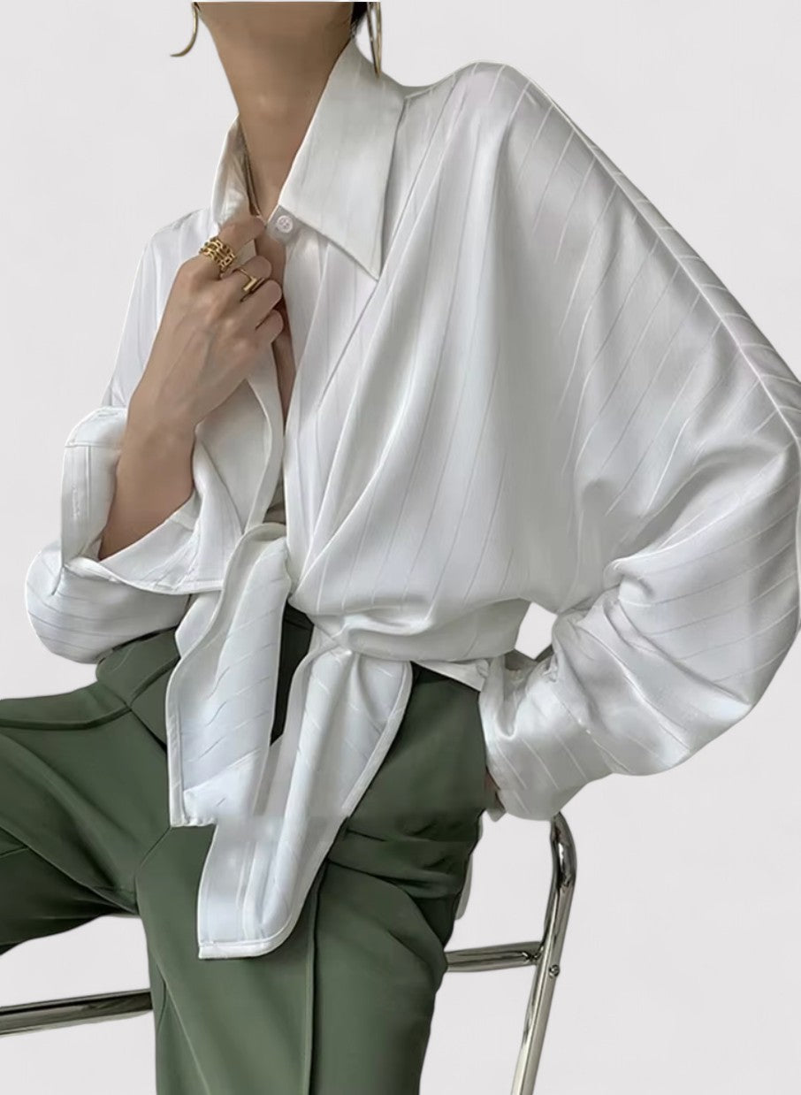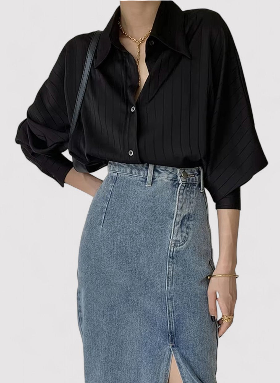 Its loose fit and comfortable design make it ideal for busy workdays and relaxed outings. The blouse's versatile style is perfect for those looking for a chic yet casual look, blending practicality with sophistication.